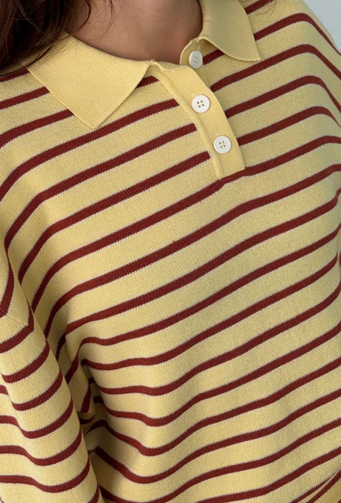 ADANNE Polo Knit – Stripe Yellow/Rust | Boii