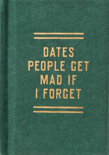 Tiny Diary – Dates People Get Mad If I Forget – en elegant, vintage-inspirert lommedagbok på bare 7 x 9,5 cm med 112 sider med gullsnitt. Perfekt for å huske viktige datoer med stil.