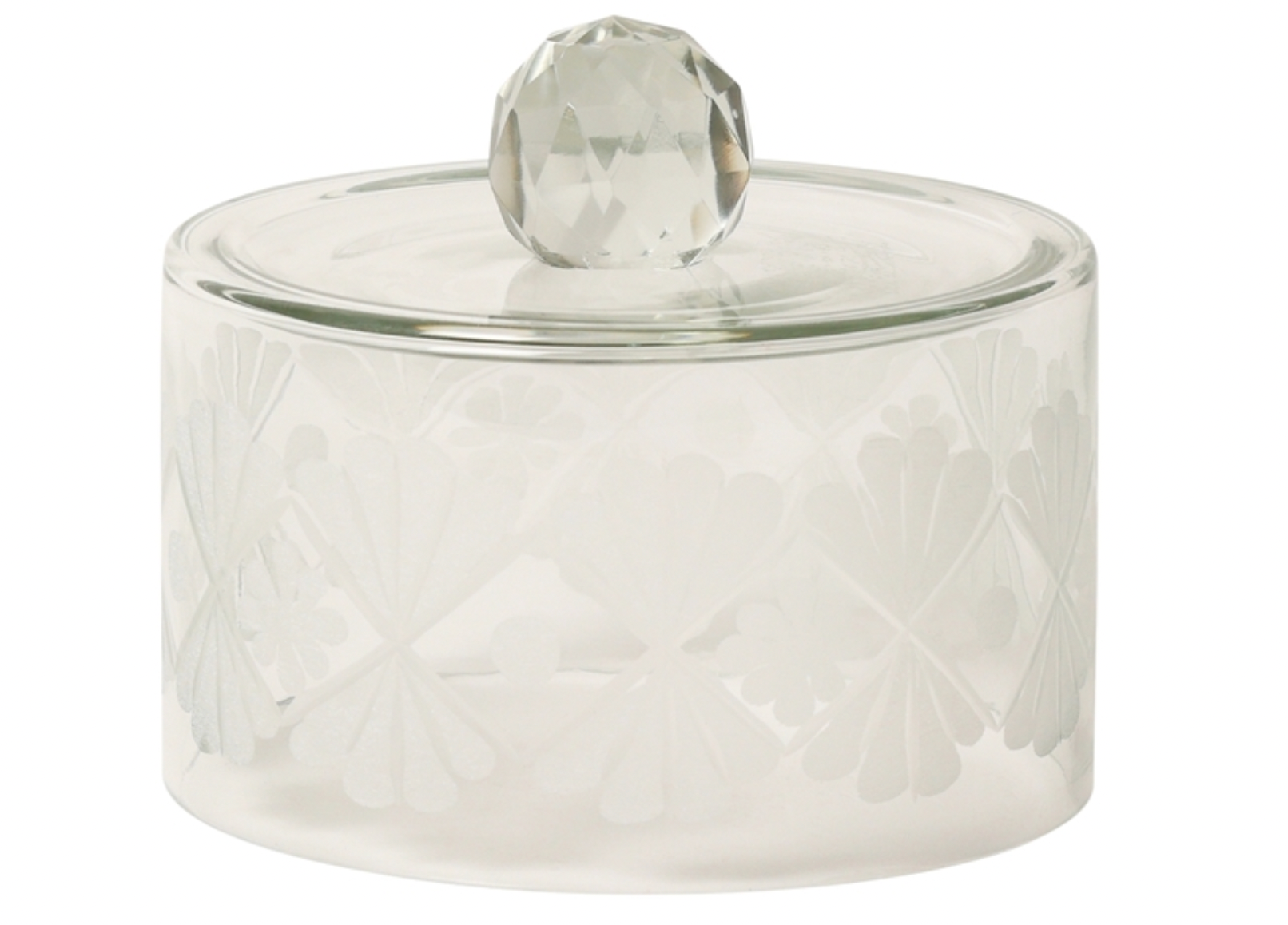 Nydelig glasskrukke med lokk, perfekt til små drops, sukker, eller annet småtteri du ønsker å putte bort. Denne er så søt og dekorativ, og gir en følelse av nostalgi.
