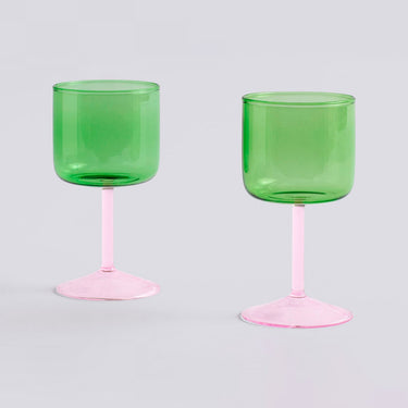 Tint Wine Glass fra HAY er en elegant serie vinglass laget i klart og farget borosilikatglass. Med sitt enkle og tidløse design er glassene like vakre på et festdekket bord som til hverdags, og de kan brukes til både vin, vann, juice eller andre drikker.