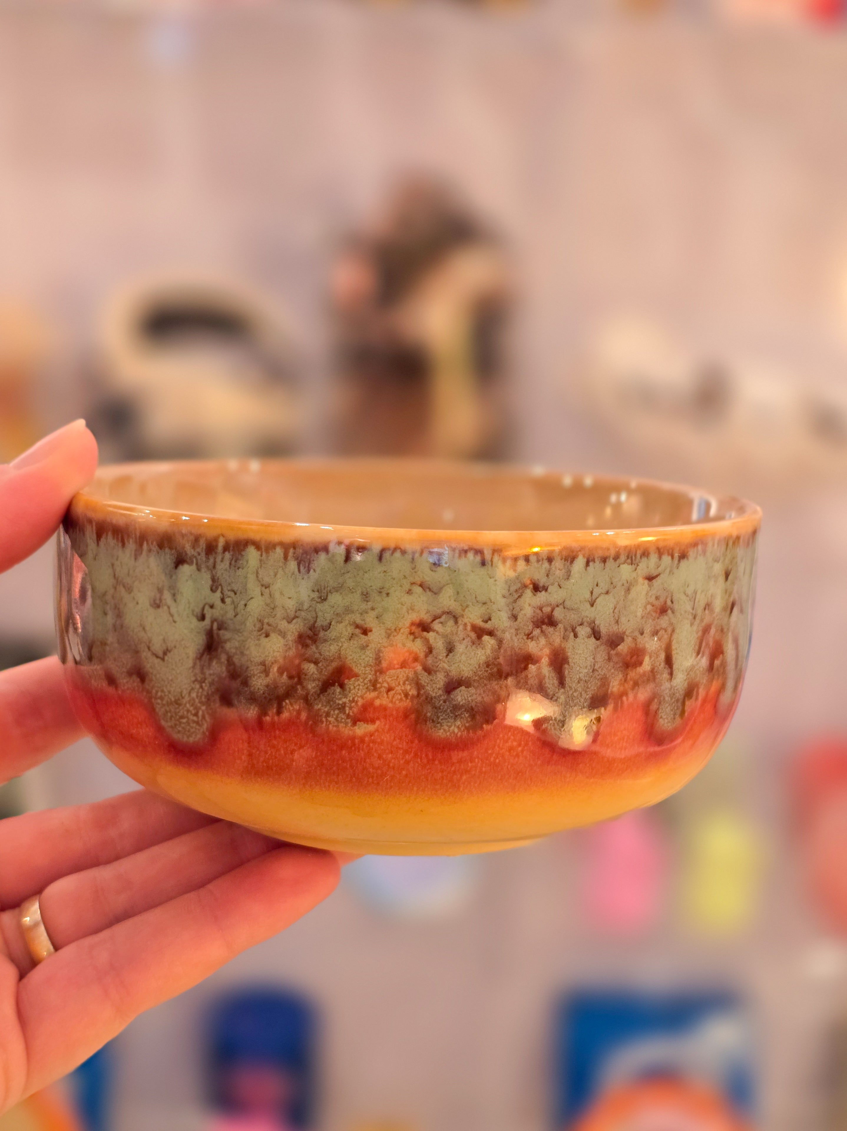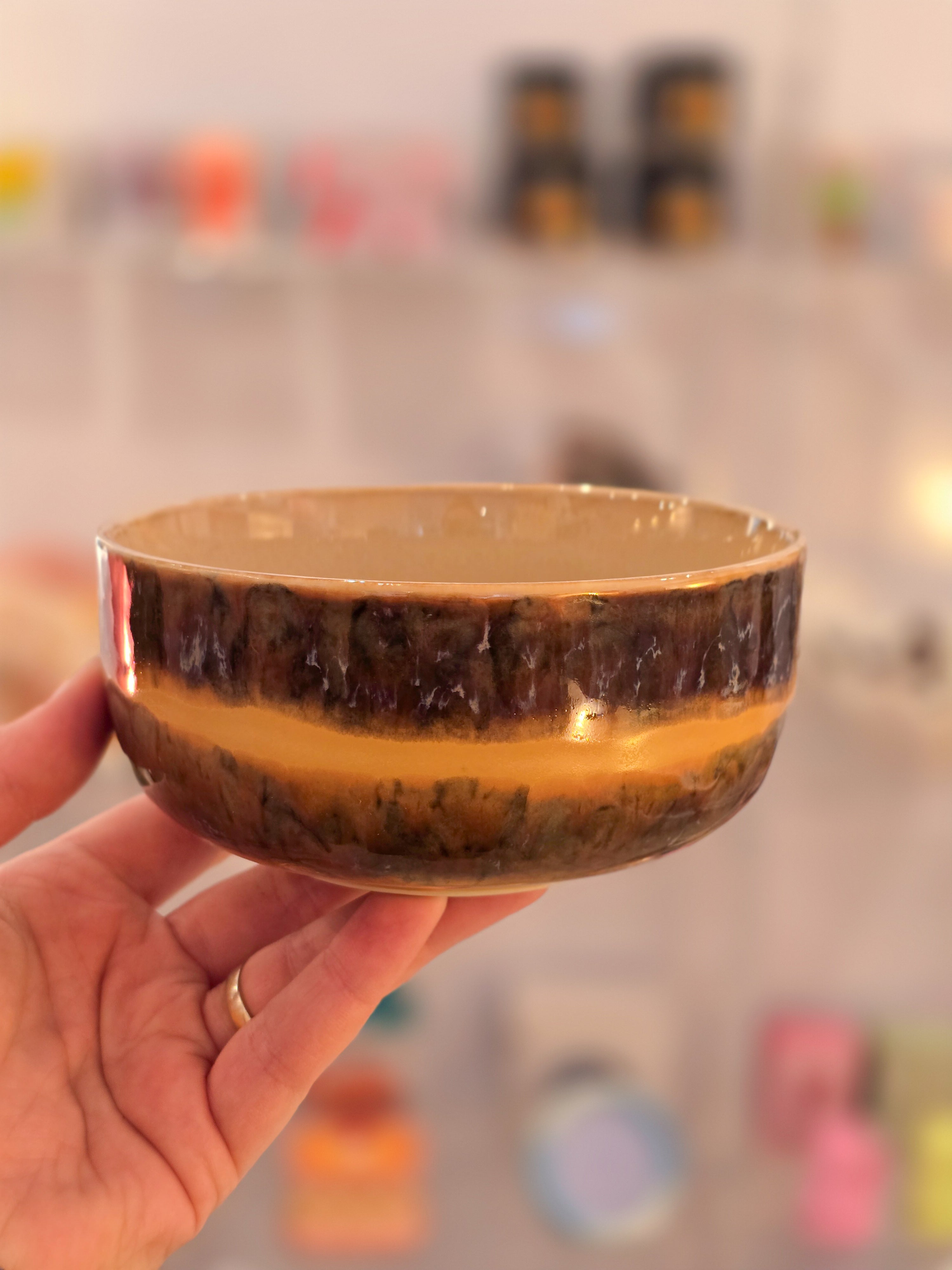 Keramikkskål i håndglasert kopp i naturinspirerte 70-tallsfarger. Selges enkeltvis og kan mikses og matches