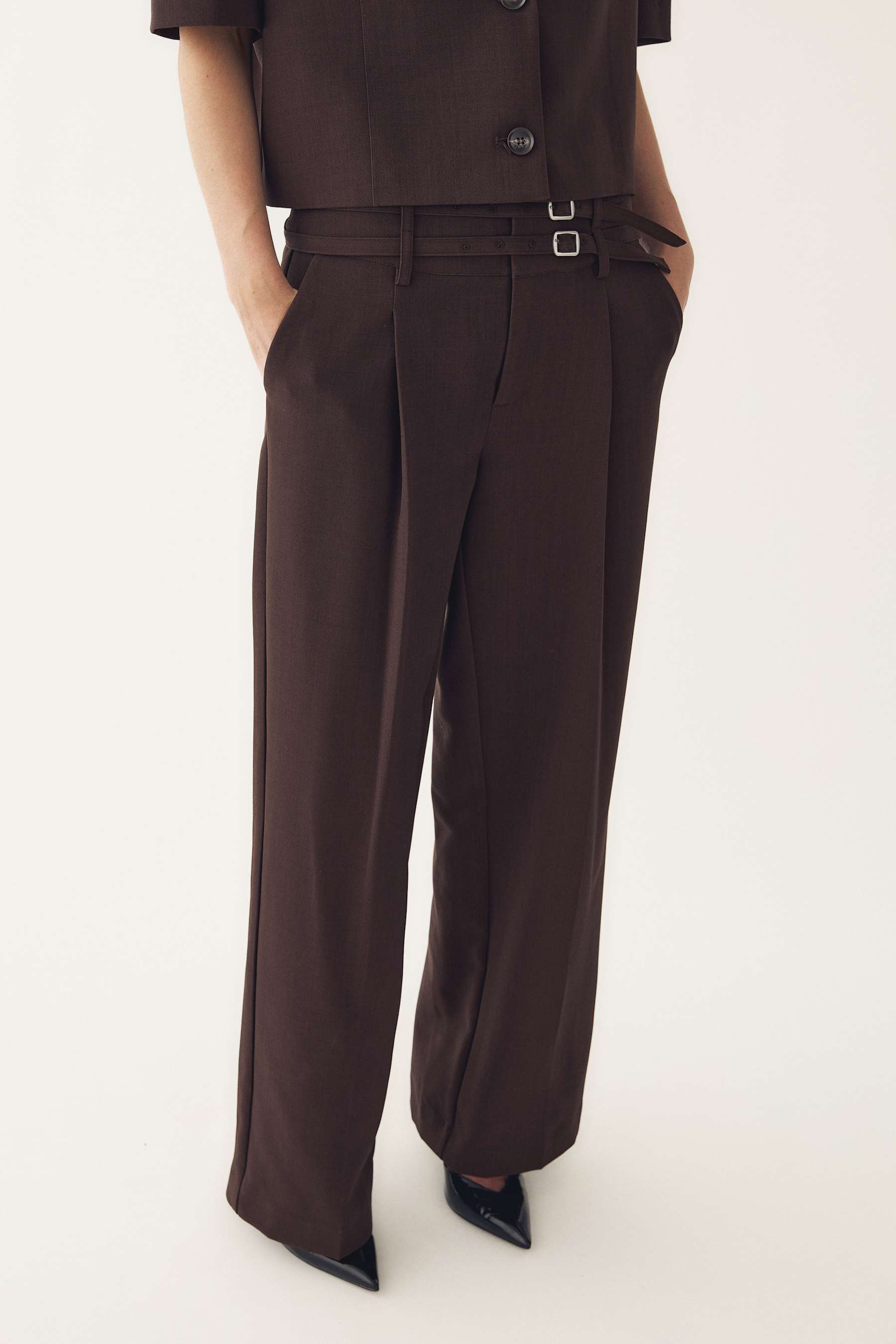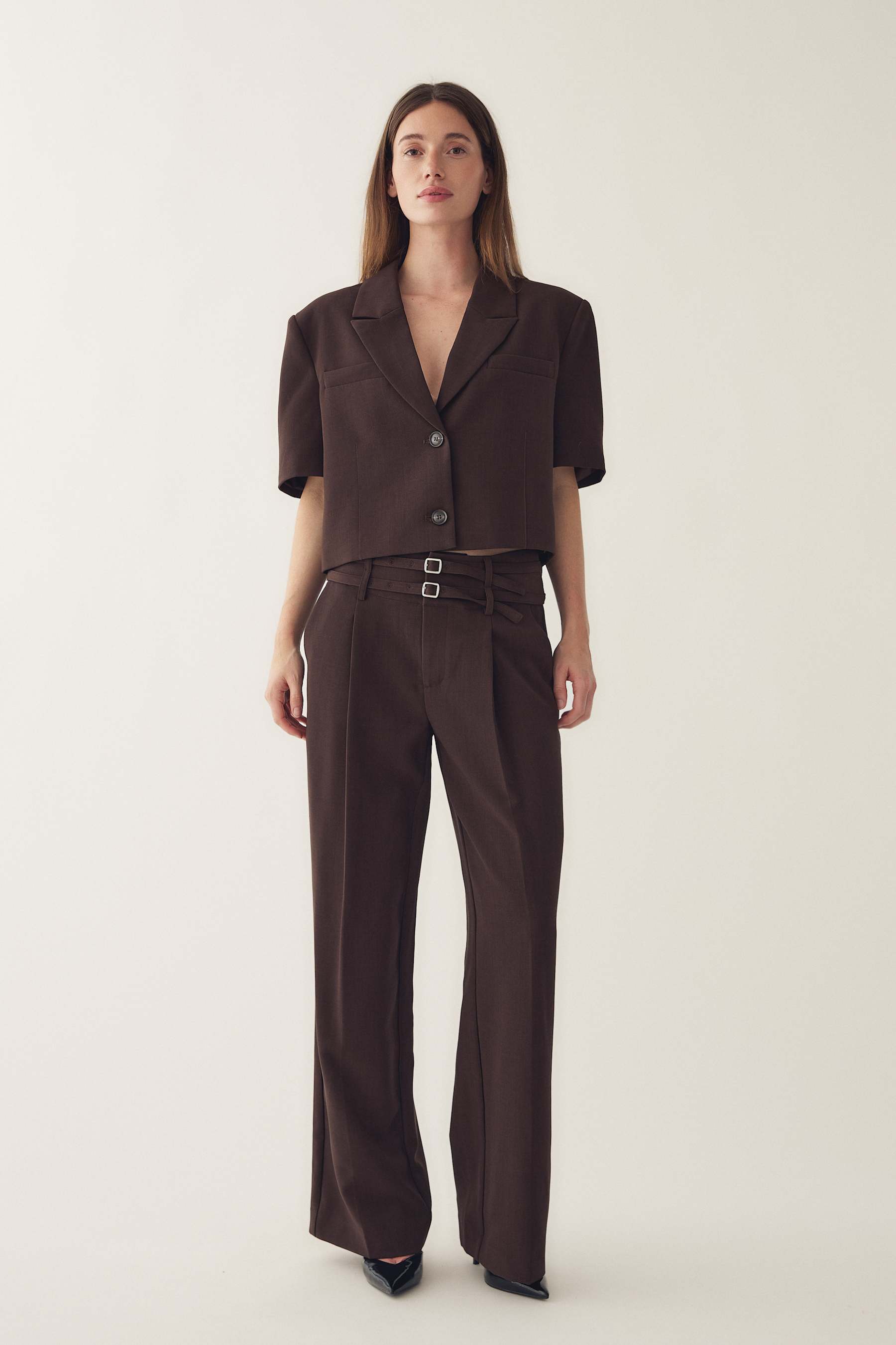 N-Darryl HW Pants er en elegant bukse med høy midje og vide ben, designet for et stilrent og skreddersydd uttrykk. Buksen har beltehemper og leveres med to smale belter, som gir antrekket et sofistikert og gjennomført preg.