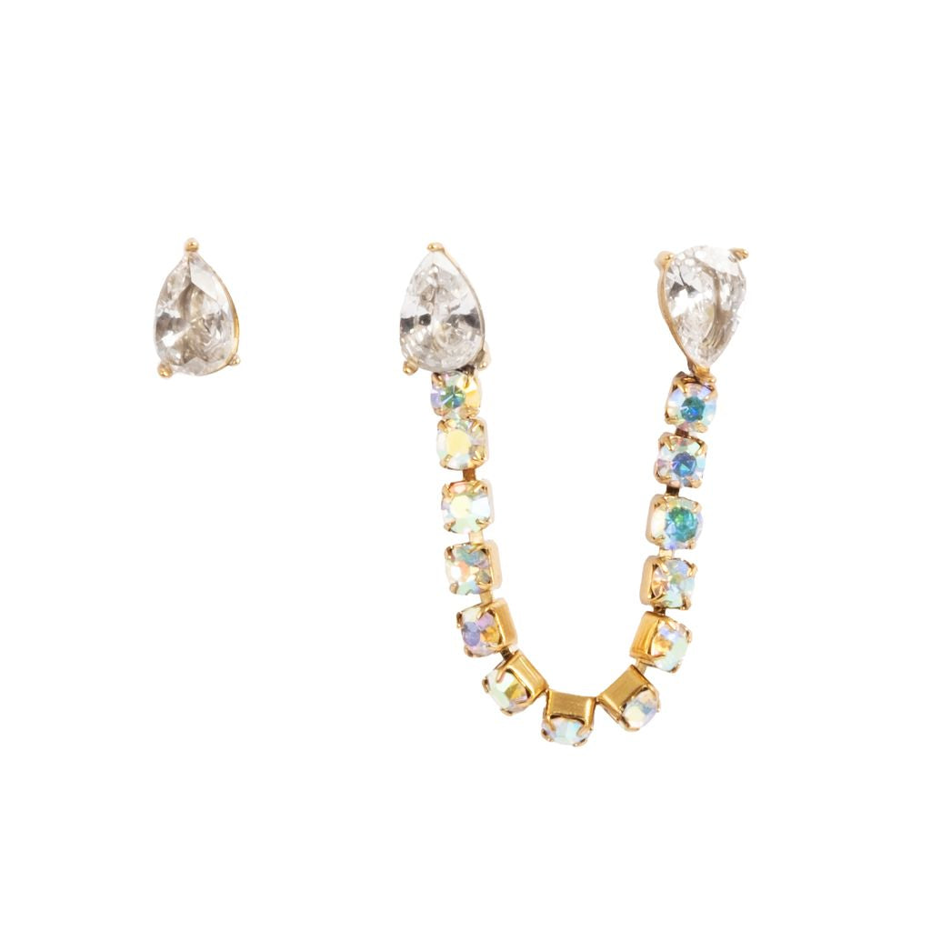 Se så fint! Har du to hull i øret er dette øredobbsettet helt perfekt. Lite og nett - perfekt til hverdag og elegant til fest! Krystallsteiner i Aurora Borealis effekt. Tone Damli by A&C Oslo, en smykkekolleksjon som oser av femininitet, lekenhet og eleganse. Høy kvalitet, laget i begrenset antall.