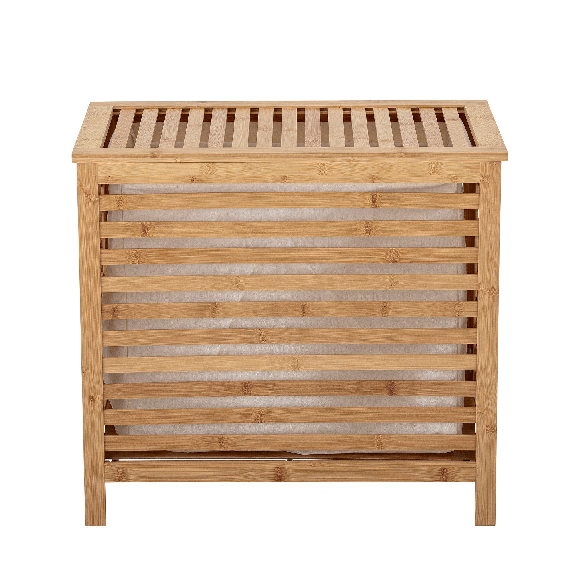 Kurven har en avtagbar vaskepose i bomull som enkelt kan tas ut og vaskes, noe som gjør den både hygienisk og praktisk i bruk. Den lette bambuskonstruksjonen gir et luftig design samtidig som kurven føles solid og tidløs.
