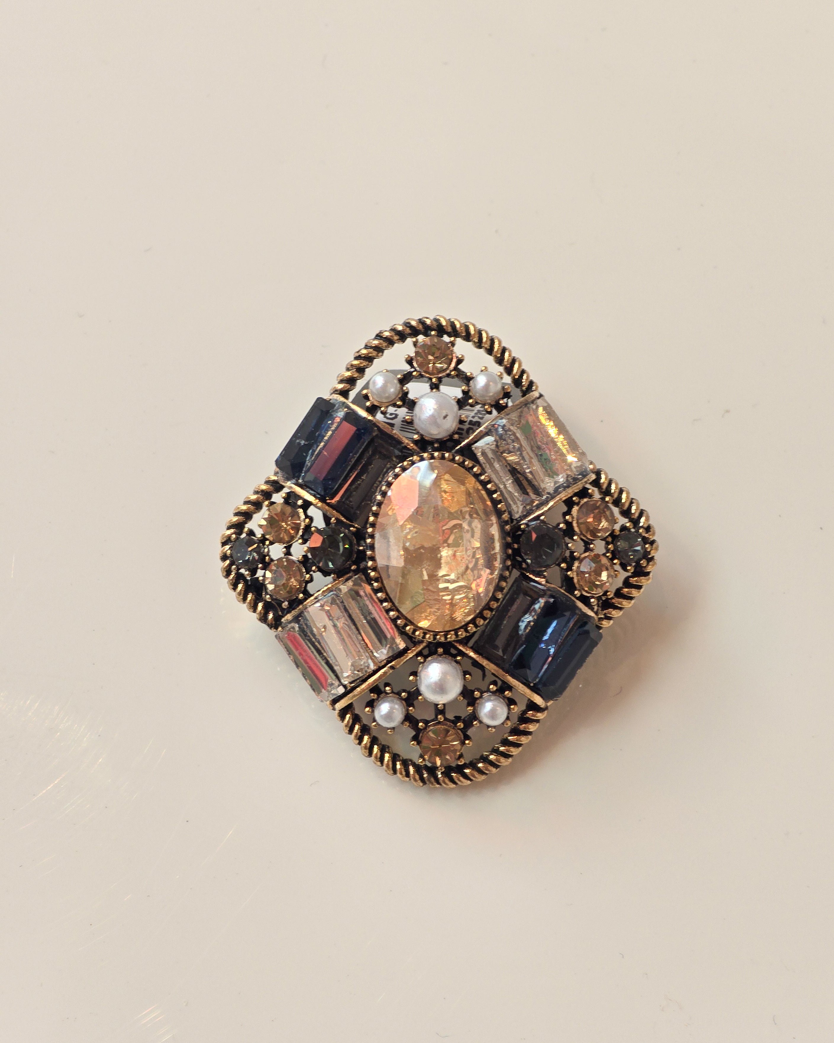 Brosje fra Black Colour med rhinestone og alloy – eksklusiv vintage-inspirert brosje til blazer, kåpe og strikk – selges hos Mitt Lille Hjem Grünerløkka Oslo og nettbutikk med klikk og hent