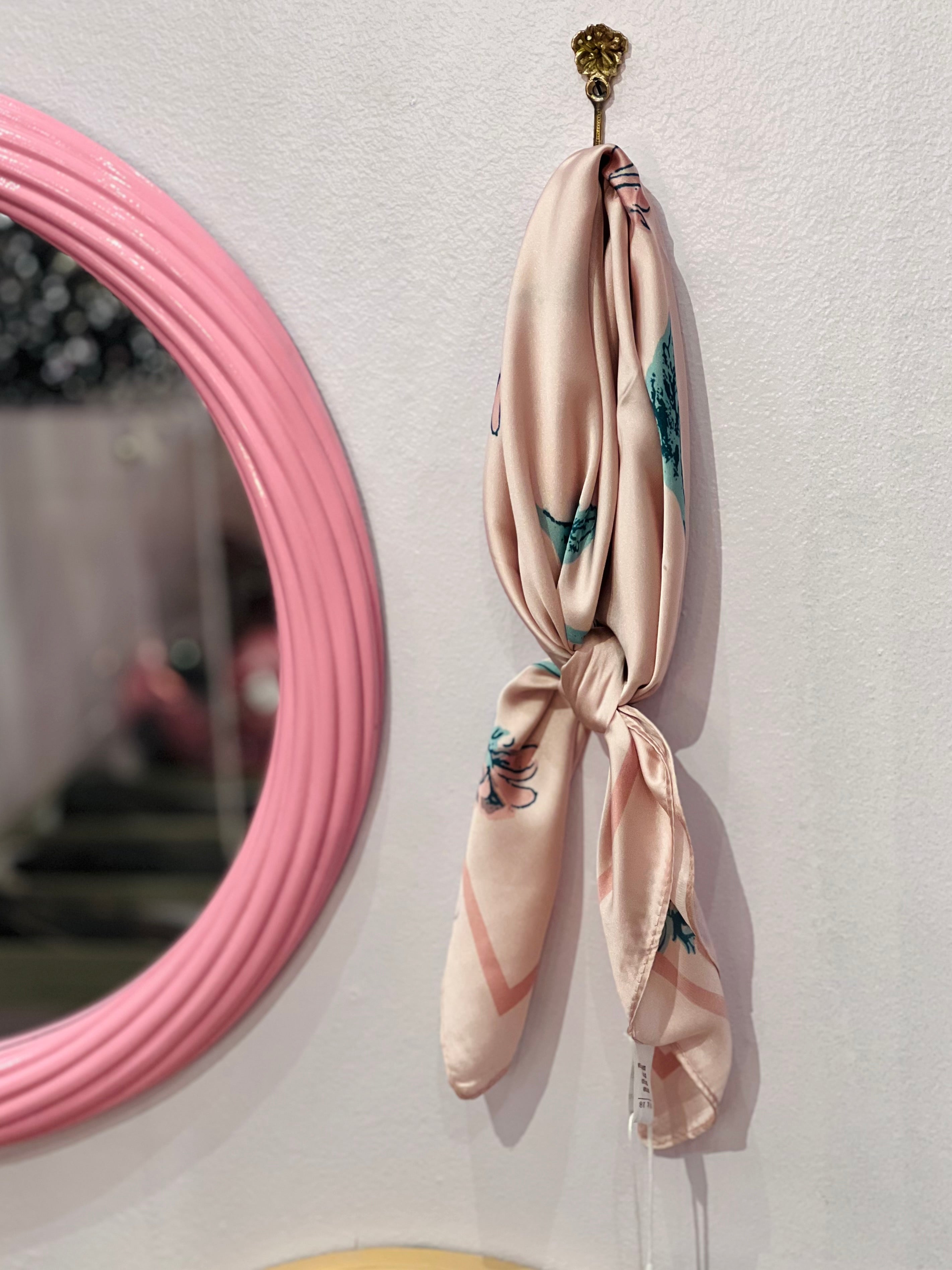 Bruk det rundt halsen, knyt det i håret eller fest det på vesken for et chic og personlig uttrykk. Et lite tilbehør med stor effekt.
