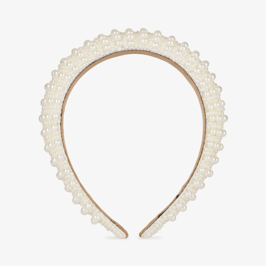 Hvit hårbøyle med perler – Pearly Headband, one size.