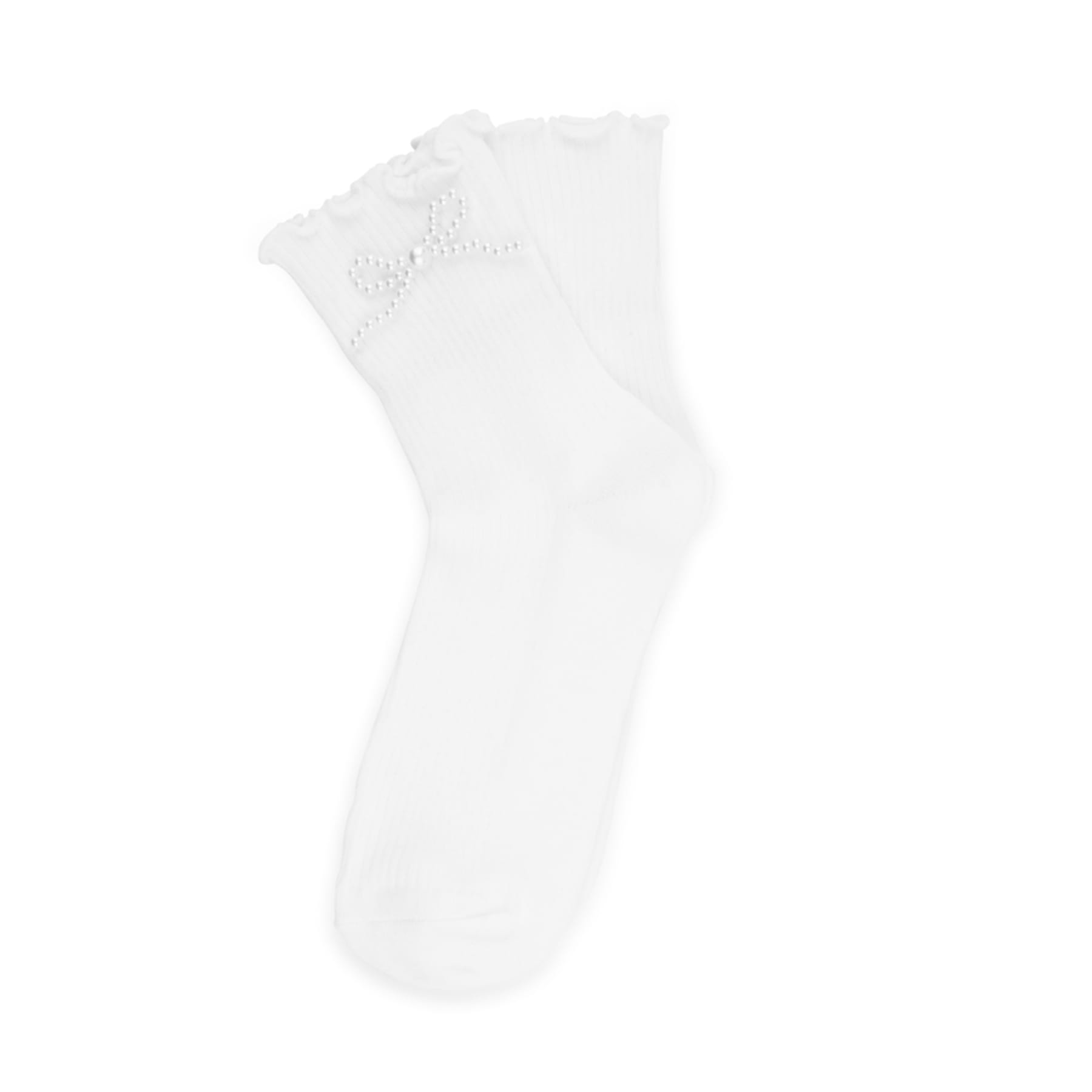 Pearly Bow Socks – Hvite sokker med perlebroderi