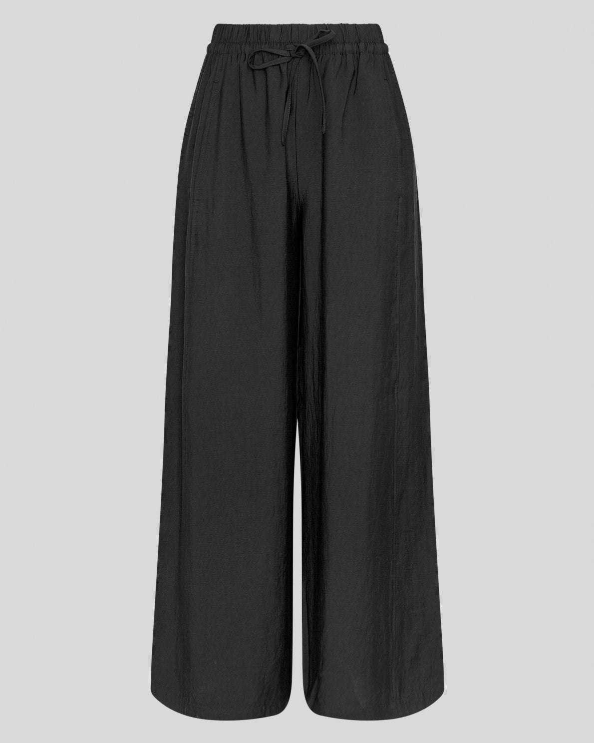 Med sin pull-on passform, myk elastisk midje og vide bukseben gir den et avslappet, men elegant uttrykk.