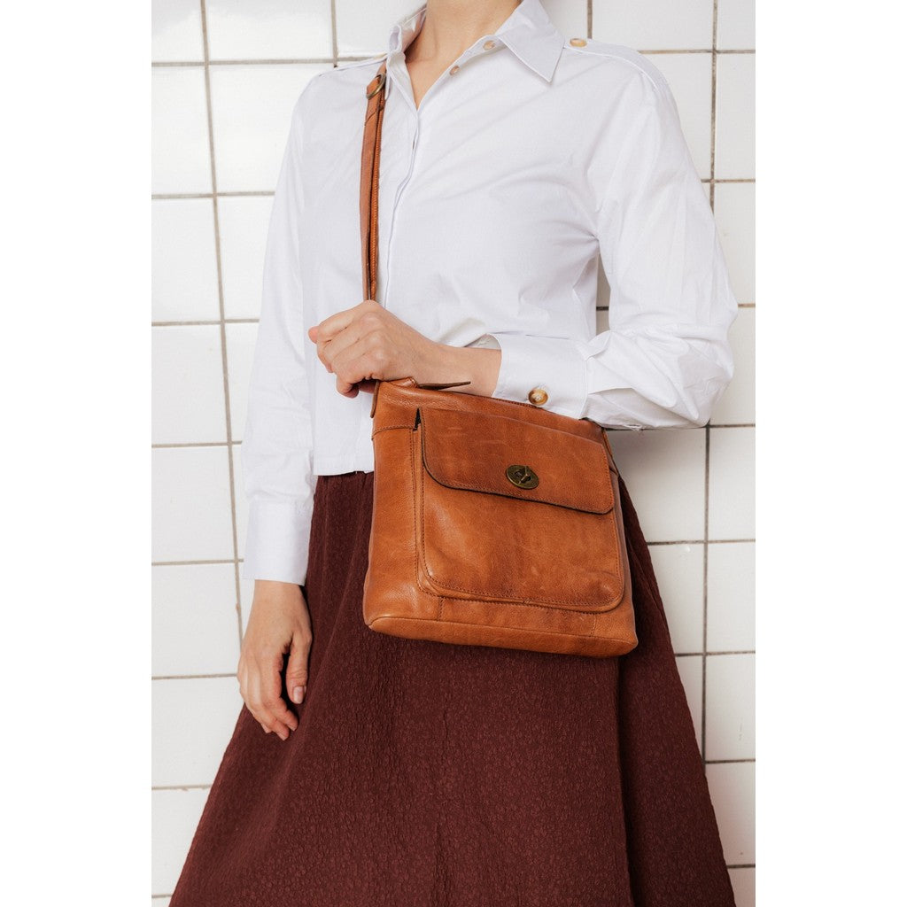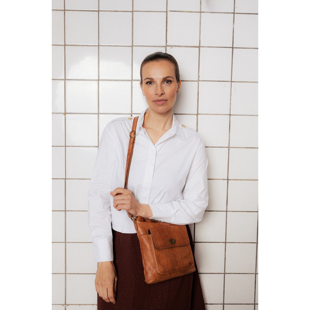 Kay Urban Crossover Burned Tan – brun håndlaget skinnveske, størrelse H25 × B23 × D4 cm