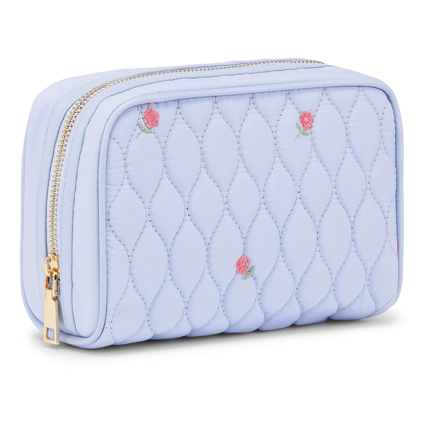 Denne søte make-up bagen i lyseblått er perfekt for deg som ønsker smart og pen oppbevaring på farten. Den kompakte størrelsen gjør den enkel å ta med i vesken, sekken eller kofferten, samtidig som det quiltede designet gir et delikat og moderne uttrykk.