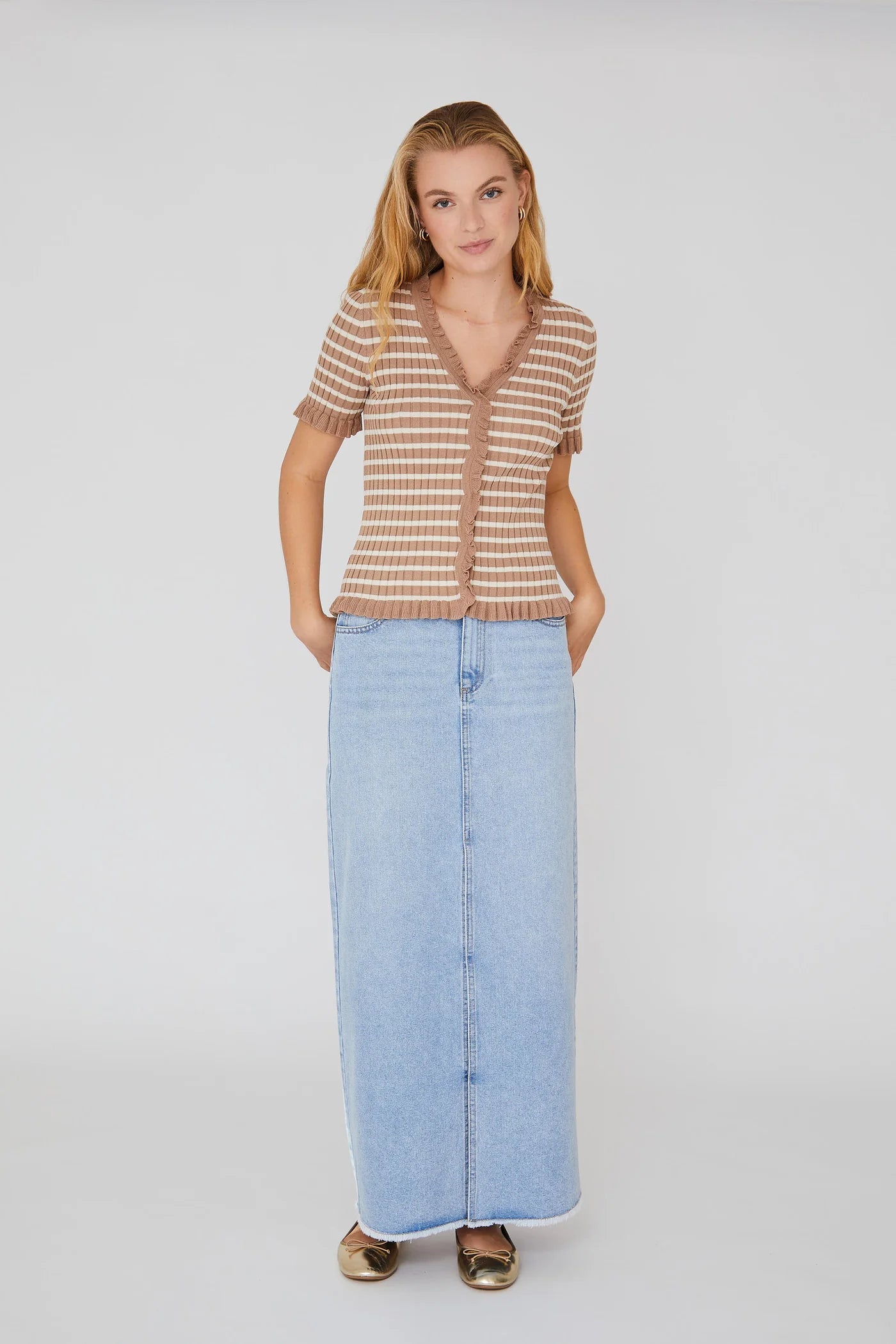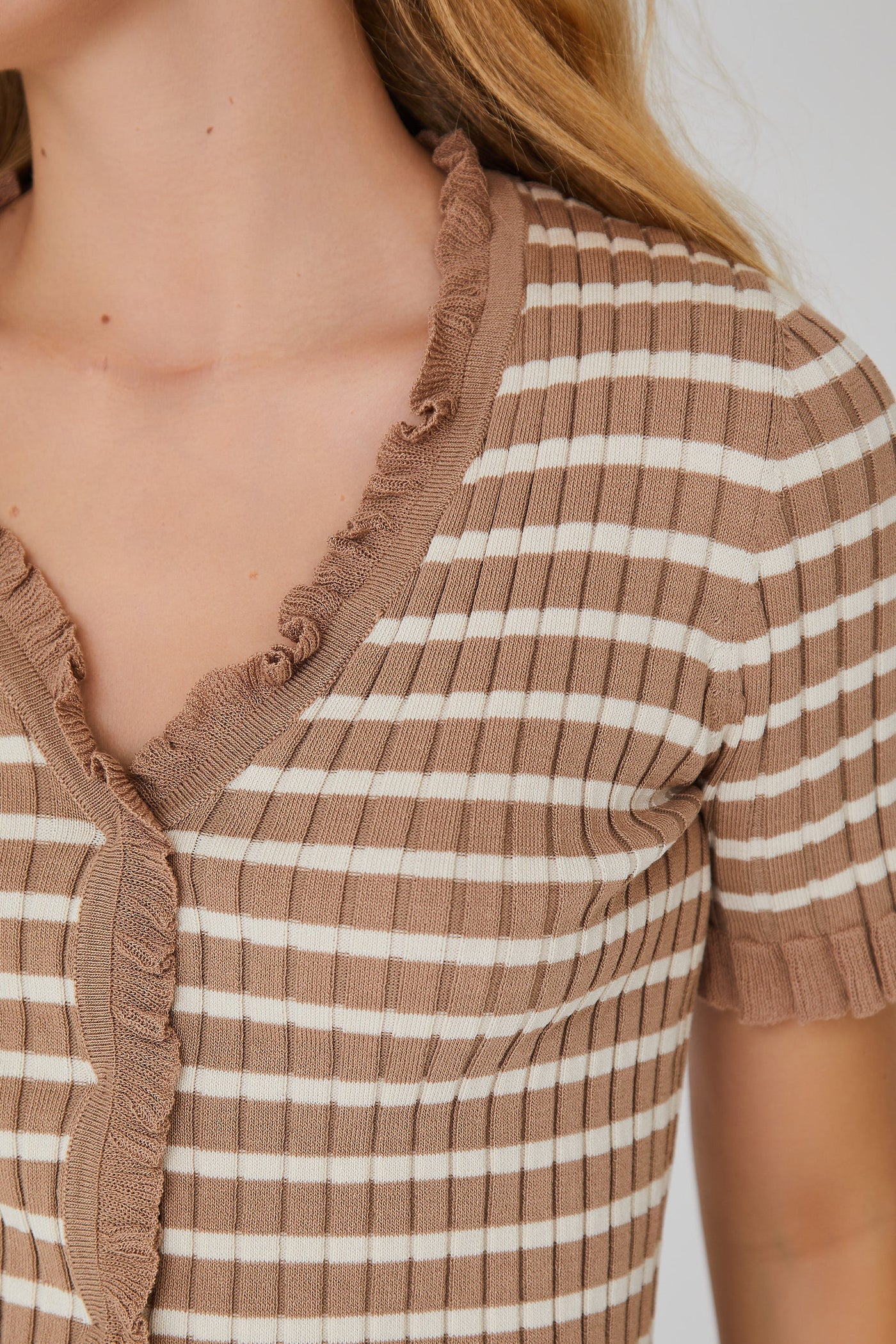 Fabian Cardigan fra danske A-View i en tidløs brun og hvit cardigan.