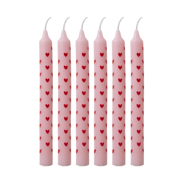 Rice – Små parafinlys i rosa med røde hjerter (12 stk.)