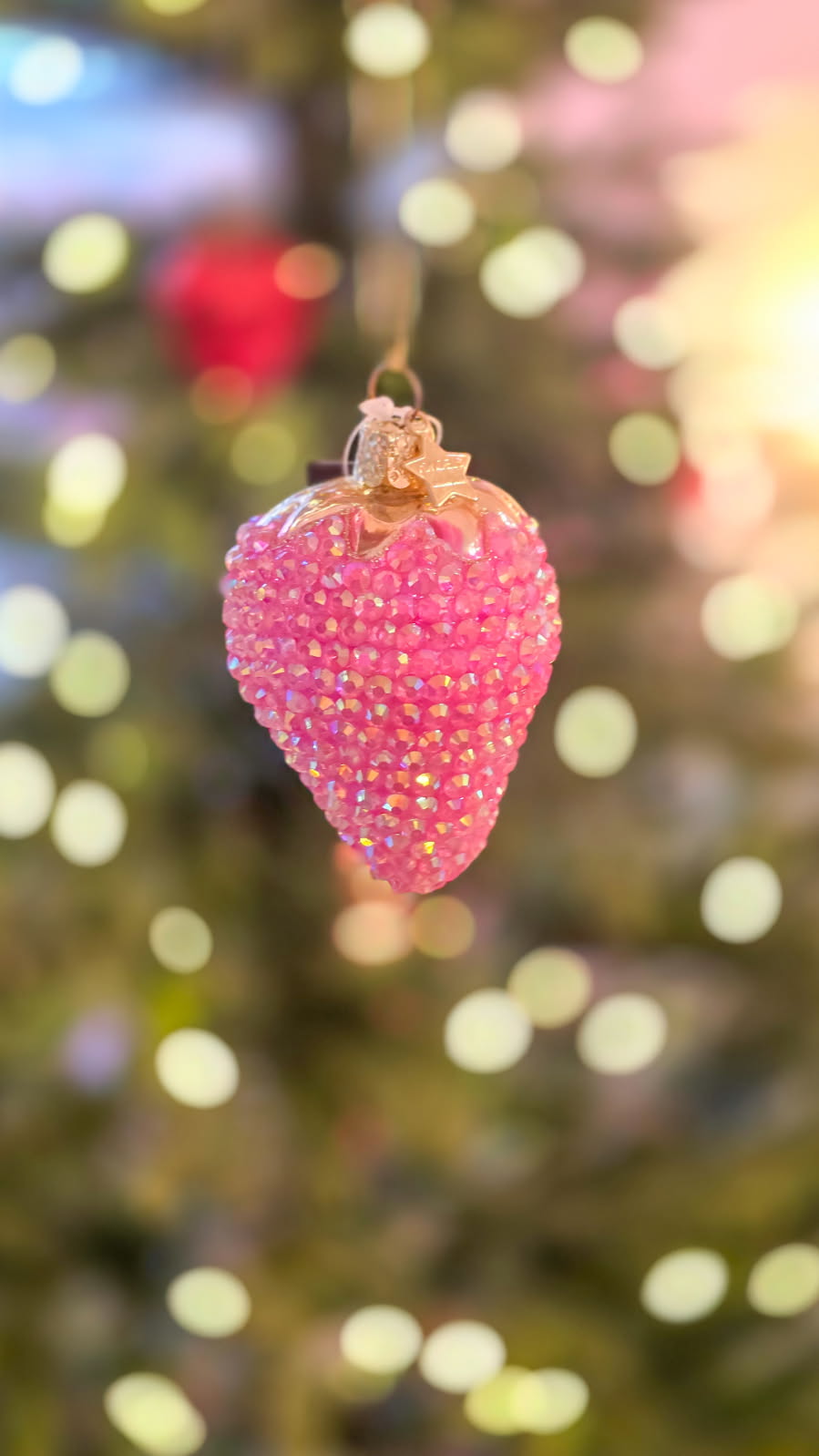 Vakkert lyserosa jordbær som vil sette det vakreste preget på juletreet eller